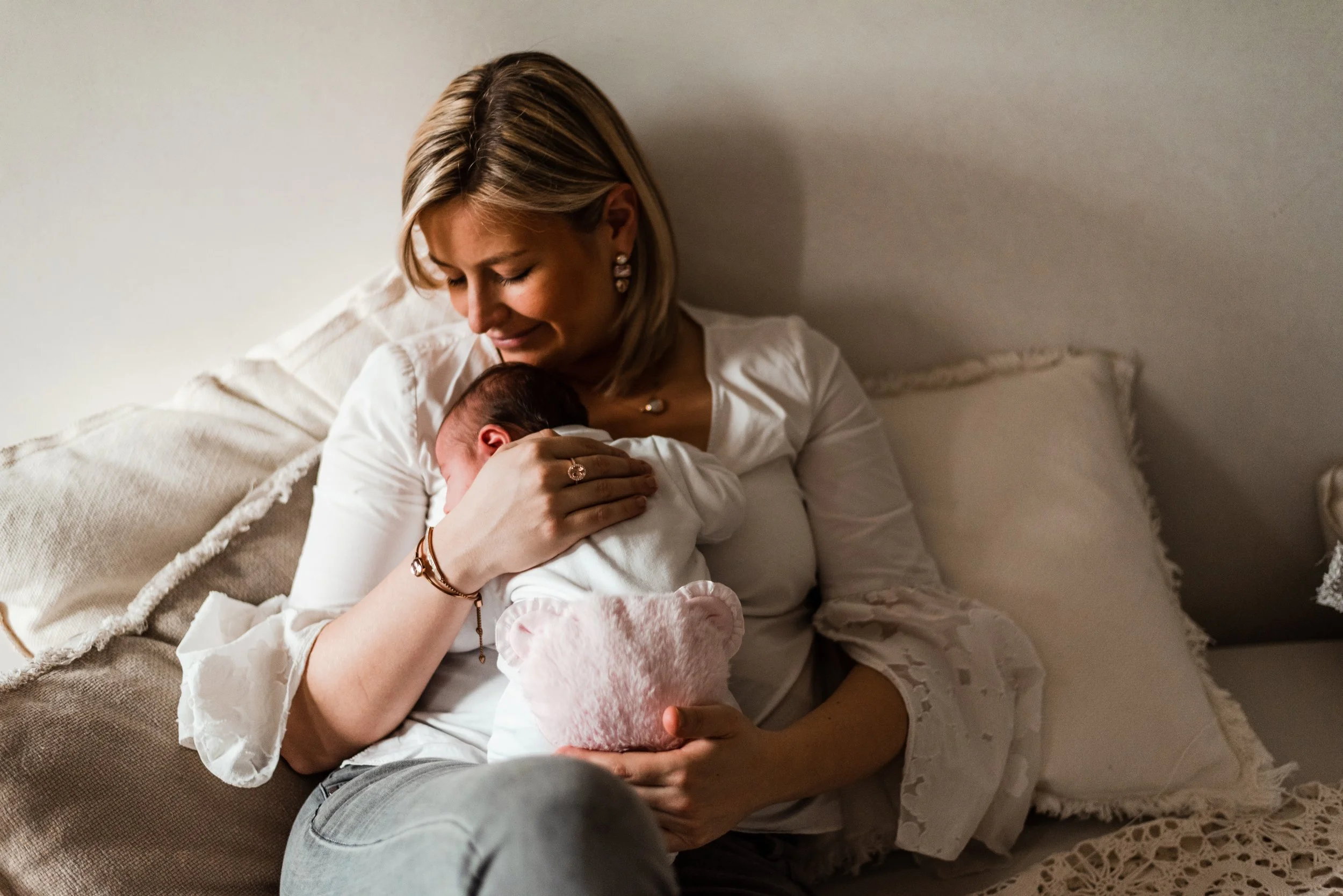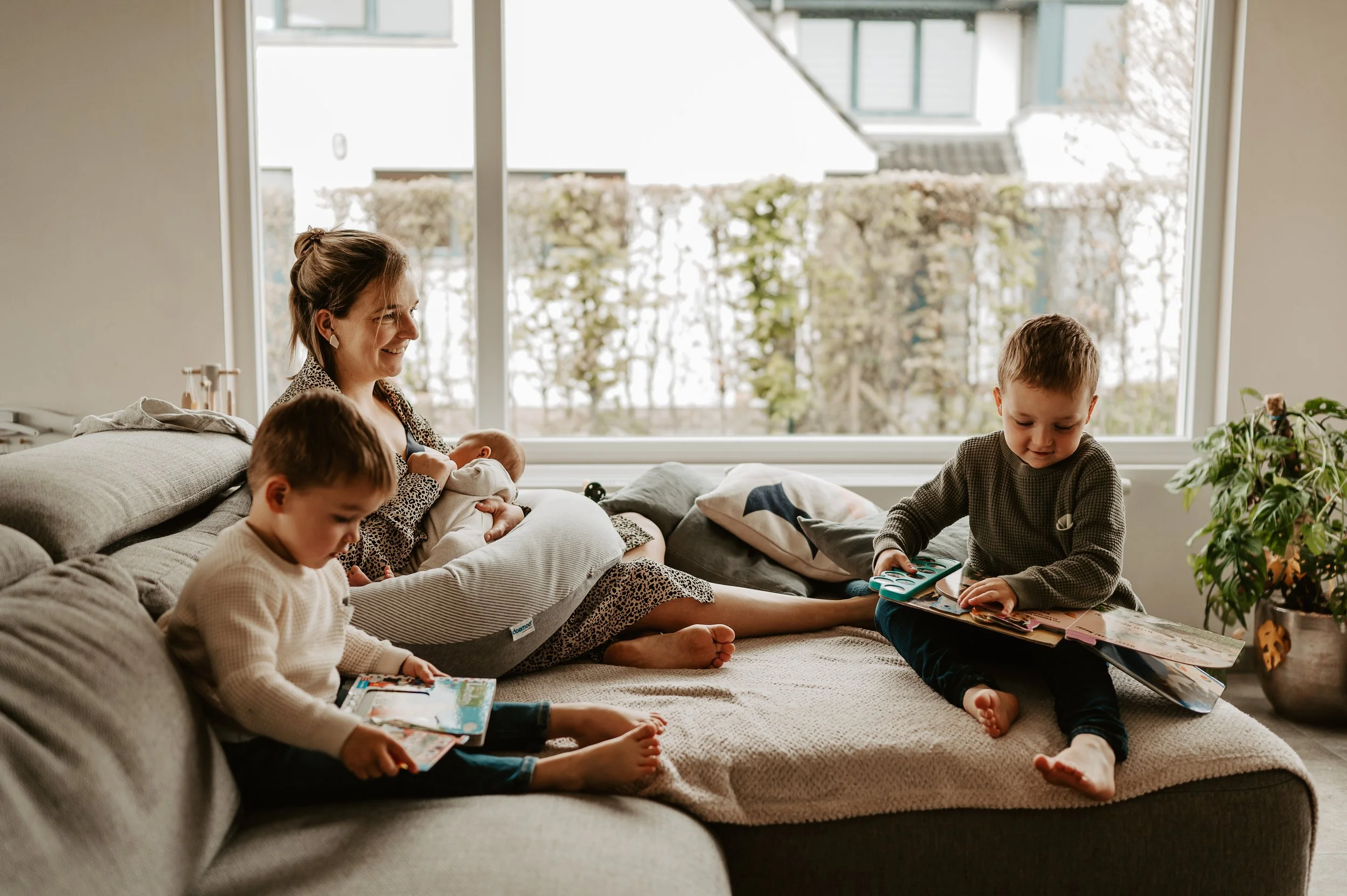 Geen stress om op tijd ergens te zijn, geen gedoe met inpakken. Gewoon thuis, waar alles is zoals het is. De geuren, geluiden en sfeer van jullie woning zorgen voor herkenbaarheid en rust en dat zie je terug op de foto’s.